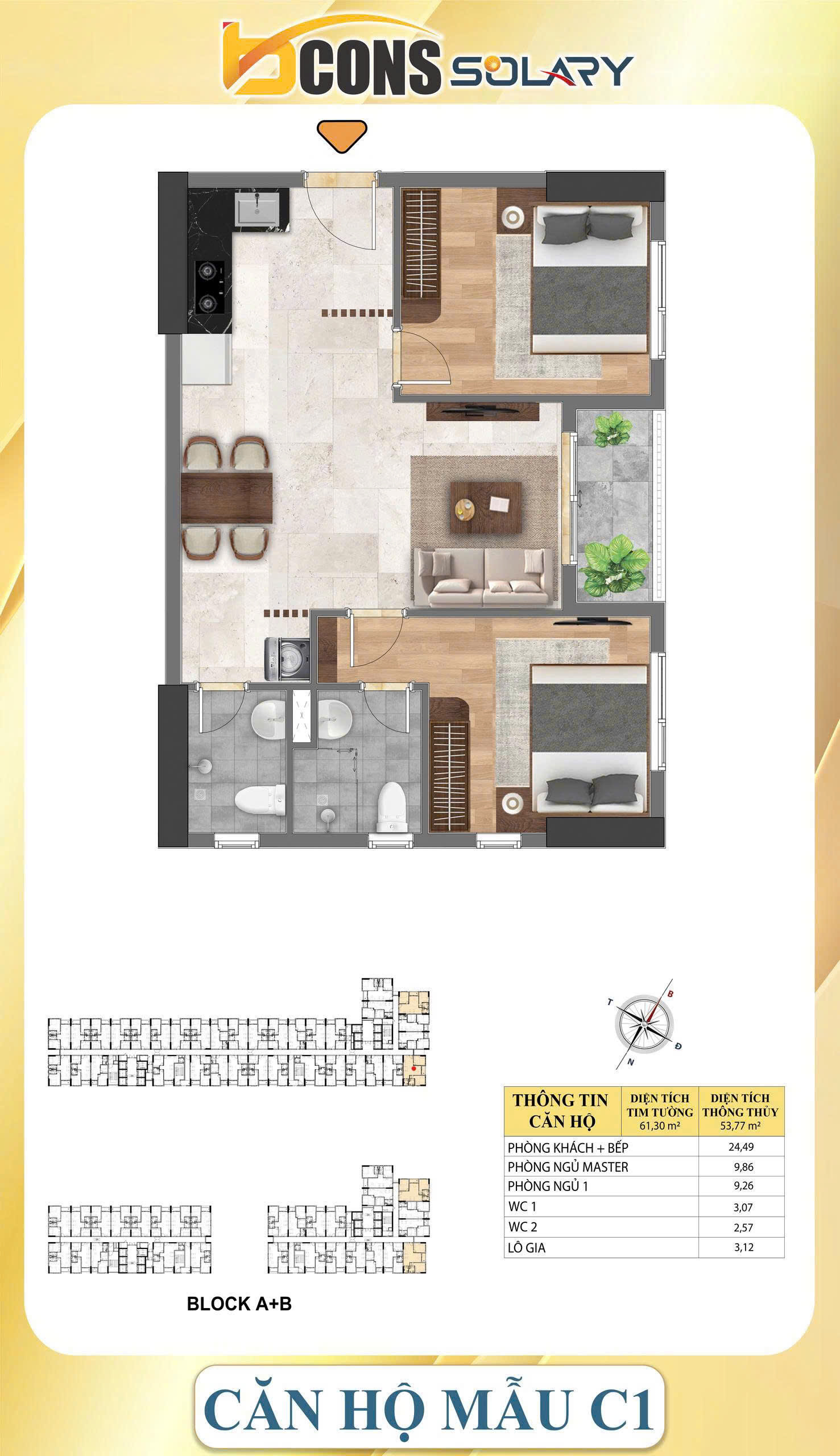 - CĂN GÓC VIEW HỒ ĐÁ – TẦNG 11 – HƯỚNG MÁT – 61,30m2